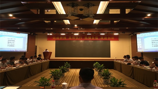 會議在周軍副總經(jīng)理的主持下順利召開,周總以一滴水的故事教育大家只有每位員工真正融入公司這個(gè)大家庭,才能發(fā)揮個(gè)人最大的才能,只有團(tuán)結(jié)高效才能創(chuàng)造成功!